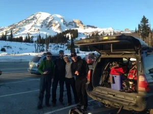 I never imaged that less than one week ago I would climb up to 9000’ and ski one of the most memorable runs of my life. The current time is 2:30 am PST and I’m writing the first of what I hope will be one of my many posts on our new blog. It’s been an emotional roller coast for me this past week. From the smile that I couldn’t wipe off my face skiing down the Nisqually chutes and the tears of saying goodbye to the wonderful people in my life, I sit here and it hits me that today,